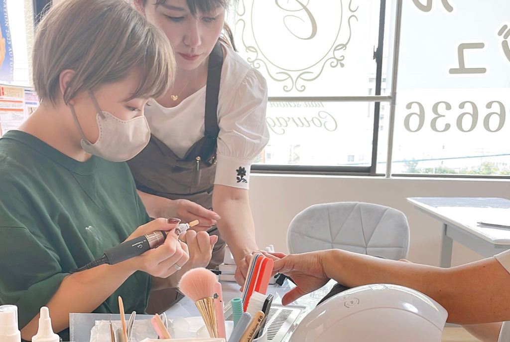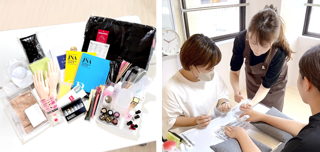 イクステンション、リペア、ネイルアートの総合的な技術及び知識を取得することができます。