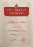 ネイリスト検定3級、ジェルネイル検定初級取得者